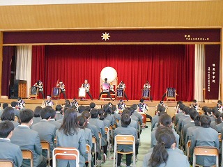本日5・6校時、1・2年生合同で高校出前講座を受けました。京都橘高等学校太鼓部の皆さんに素晴らしいステージを見せていただきました。