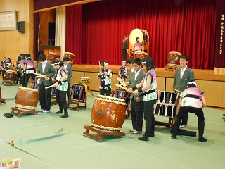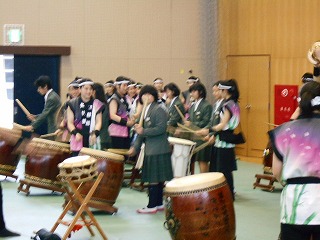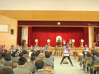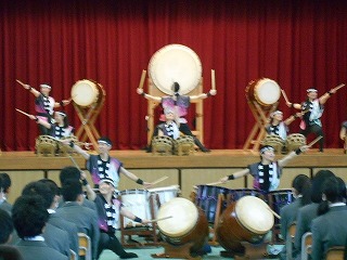 途中、太鼓の体験もさせていただき、楽しくプログラムが進み、最後はアンコールにも応えていただきました。きりっとしていて、かっこよくて、ファンになった生徒もたくさんいたのではないでしょうか。