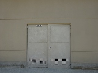 体育館北側の、体育倉庫の鉄製の扉がさびてつぶれてしまいました。丁度、グランドのハンドボールのゴールの後ろで、シュートが飛んでくるところです。業者さんにどうやって持っていこうか、溶接できるかなと困って、田辺高校に相談したところ、田辺高校の先生方が、リベットを打ち込むという方法で、さっと直していただきました。本当に助かりました。