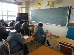 今日2校時、他校の先生が本校の授業見学に来られました。1年2組の数学(少人数授業)でしたが、みんな熱心に取り組んでいました。他校の先生も「勉強になりました。みんな熱心に取り組んで活動していますね。」と感想を残していただきました。