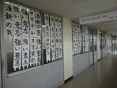1・2年生の教室前にも書き初めが張り出されました。また、3年の学年廊下には、3学期(新年)の抱負が張り出されていました。さすがに高校合格など、進路に関する内容が多いです。これからの数か月、悔いの残らないよう全力で頑張ってほしいと思います。