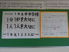 2年数学 連立方程式について考えました。 1年学年掲示板 毎日の英語のフレーズ 1年学年目標