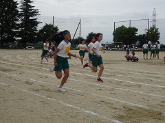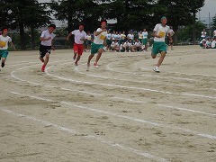 朝から、生徒会、部活の係が準備をしてくれました。 100m走 先生も飛び入り参加
