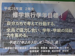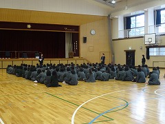 2年生は、修学旅行に向けて、様々な準備が進んでいます。今日の6校時には体育館で、学年主任から、修学旅行成功に向けての心構えが話されました。「人に指示されなくてもきちんと静かに話が聴ける。」「自分の係や役割を責任を持って果たす。」「互いに思いやりを発揮する。」この3つをしっかりと成し遂げて素晴らしい修学旅行にしてほしいと思います。