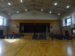 1月25日(水)6校時、2年生は体育館で学年集会を短時間持ちました。修学旅行に向けて、様々なグループで並ぶ隊形、係の人等を確認するためです。学級内での集合、スキー班別の集合、バス別の集合、その場面場面での係など、大変複雑ですが、短時間にさっと移動してスムーズに行えていました。