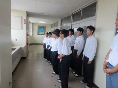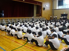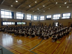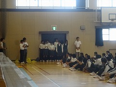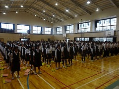 パートごとに全校生徒が整然と並びました。 生徒会本部