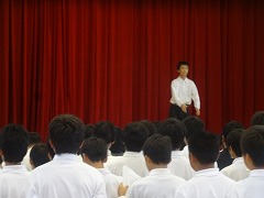 本日6校時、体育館で、全校合唱の練習を行いました。いよいよ合唱コンクールに向けての練習の始まりです。生徒会が中心となって企画・運営し、スムーズに練習が進みました。歌と歌の間には、生徒会本部やパートリーダーが、合唱に対してのコメントを加えて、3回目にはかなり聴かせる全校合唱になったように思います。