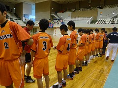 女子の第3試合、相手は、九州1位の強豪神森中でした。これに勝てばベスト4という試合でした。前半互いにリードしたり、されたりのシーソーゲーム。後半半ばまで競り合いましたが、最後は惜敗しました。自分たちのできることは精いっぱいやりました。少ない人数でよく頑張りました。全国ベスト8。誇りをもって次の自分自身の目標に挑戦してほしいと思います。