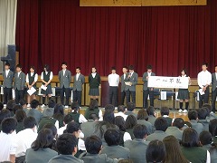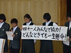 総会の趣旨説明 いじめ追放宣言全員で読み上げ 議事をめぐって質問と答弁