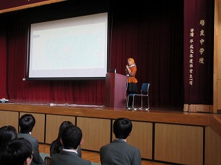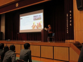 講師は、インドネシアのフィトリー先生です。日本に来て、まだ、2年もたっていないそうですが、日本語で、インドネシアのことを楽しく紹介していただきました。私は特に、インドネシアの握手、挨拶、そして地域による多様性について興味を持ちました。