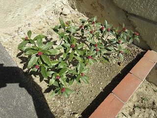玄関の沈丁花のつぼみ。膨らんできました。