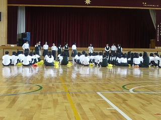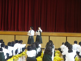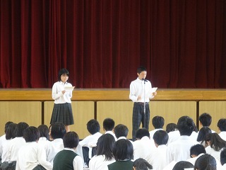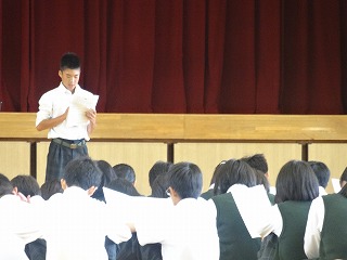 2年生は、家庭学習ベストノート賞27人。朝読書の集中力、掃除、ベル準等きちんとがんばっていること、授業中活発な発言等、一人一人が自覚を持って頑張っています。今後は3年からバトンを受けてさらに協力や団結を目指すことを目標に挙げていました。