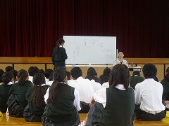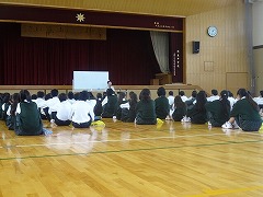 1年生は、本日5校時体育館で福祉学習に取り組みました。車いす生活を送っておられる栗山先生からお話をしていただきました。20歳の時、交通事故で、車いす生活に入り、現在、福祉関係のお仕事でバリバリと働いておられます。