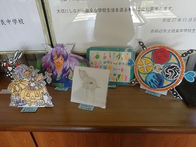 職員玄関に、新しい美術部の作品が展示されました。お越しの際はご覧ください。
