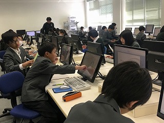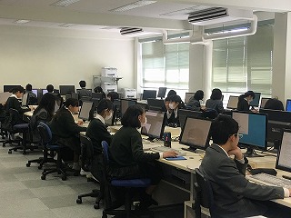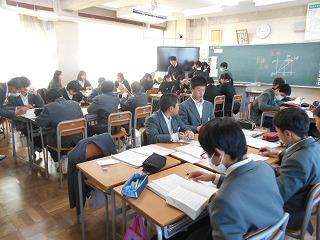 2学期に進路セミナーで様々な仕事に実際に携わっておられる方から、仕事の喜びや苦労、どうすればその仕事に就けるのかなどを聞き、3学期に入ってからは、自分たちで様々な職業について調べ、新聞の形にまとめました。そして、今日は調べた内容を発表しました。保護者の方々にも多数おいでいただき参観していただきました。
