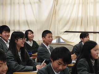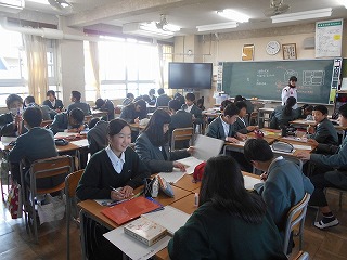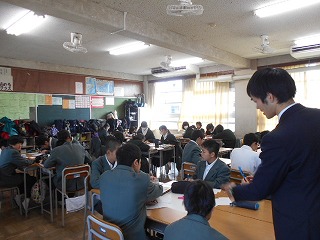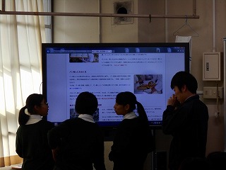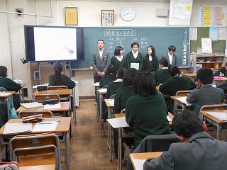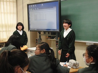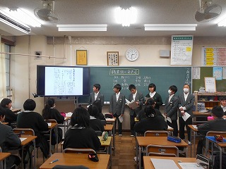 生徒諸君は、調べた内容をしっかりとまとめ、簡潔にわかりやすく説明してくれました。聞く態度もよかったと思います。ただ、惜しいのは、もう少し声を大きくして、下を向いて原稿を読むのではなく、聞いている人にしっかりと顔を向け、表情豊かに説明ができるともっと素晴らしい発表になるのにと思いました。