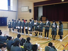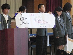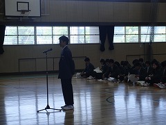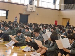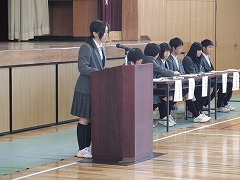 今年の生徒総会は、冒頭で、全員で、昨年策定した『いじめ追放宣言』を唱和しました。今後、永い伝統にしていくとともに、宣言の精神を一人一人が大切にして、温かな人間関係を作る努力をすることが大切です。準備、当日の運営、ご苦労様でした。