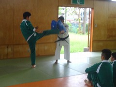 京都廣学館高校からは、少林寺拳法の基礎を教えていただきました。実際に蹴りや突きをやってみて、少林寺の面白さと難しさを痛感しました。説明が面白くて、あっという間に1時間が過ぎました。