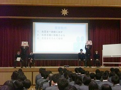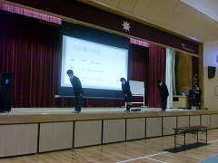 そんな中、服装や言葉遣い、礼儀・態度等はきちんと行えることが大切になってきます。木津高等学校の情報企画科の先生と生徒の皆さんに来ていただき、ビジネスマナーについて教えていただきました。礼・お辞儀一つとっても、場面によって違うということがよく分かりました。一つ一つの振舞いを洗練させて、自分を磨き、進路を切り開いてほしいと思っています。 木津高校の皆さん。本当にありがとうございました。