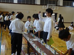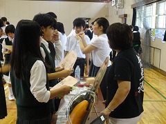 5・6校時を使って体育館で1年生の喫煙防止教育を行いました。たばこの害はみんな知っているようで、正確に知っている人は少ないと思います。1時間目は主にスライドを見ながら講師のお話を聴き、2時間目は各体験コーナーで、たばこと味覚の実験を行ったり、喫煙防止の川柳を作ったりと、様々な体験を通じて学習しました。講師は、NPOタバコフリーの青木篤子先生と、国立南京都病院の禁煙認定指導看護師の井上江美子先生でした。先生からは、「暑い体育館だったけれど、みんなが積極的に話を聴いたり、体験してくれてとても良い教室ができました。」とお褒めの言葉もいただきました。青木先生、井上先生どうもありがとうございました。