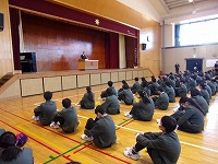 また、生徒指導担当の先生からは、冬休みの過ごし方、不審者や金銭に関わる注意がありました。
