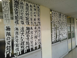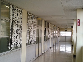 3年生の教室前の廊下に、書き初め作品が展示されました。