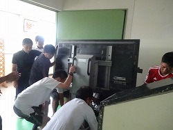 始業式放課後、先生みんなで電子黒板を、はこびました。エレベーターがないので、階段は特に重かったです。各学級に電子黒板がそろいました。授業で有効に活用してほしいと思います。