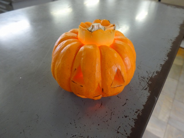 今日はハローウィン。AETのナターシャ先生がウサギに変装して、英語の授業の各教室に行きました。また、本物の観賞用のかぼちゃを使って、ハローウィン用のジャックオーランタンを作ってくれました。職員室の入り口で、中にろうそくをたいていたので、かぼちゃの焦げる香ばしいにおいに気付いた人もいるかもしれません。