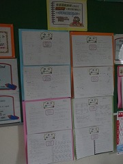 各学年掲示板に、家庭学習ノートのしっかりできている見本が張り出されました。研究発表会でも家庭学習ノートが大きな話題となっていました。