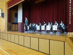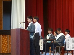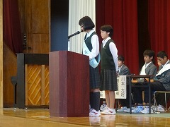 本日6校時、体育館で、生徒会本部役員選挙の立会演説会を行いました。選挙管理委員長がこの選挙の意義と心構えをしっかりと述べてくれたあと、各候補者と応援演説者が演説をしました。立候補した動機、決意、本部役員になってやってみたいことなど、どの候補者もしっかりと自分の言葉で述べました。