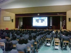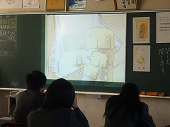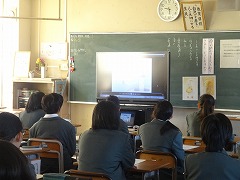 普段の授業の時間割を基本に公開しましたが、1時間目には全学級「道徳」を公開しました。特に2年生は全学級で、大型テレビを使った映像資料をもとに「命の大切さ」について考える授業を行いました。