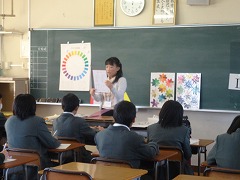 1年生は、3校時から、「総合的な学習の時間」を割り当て、職業について考えるキャリア教育について学びました。4校時は、培良中の卒業生の方を含む6人の方に、今、従事されている仕事について、その喜びや苦労、中学生時代に大事にしてほしいことなど話をしていただきました。1年生は、自分が聞きたい講座を2つ選んで話を聴きました。