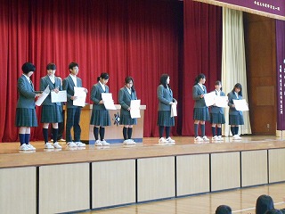 伝達表彰では、この夏に、様々なコンクール等に出品して、賞を受けた生徒諸君を表彰しました。それぞれ素晴らしい作品でした。