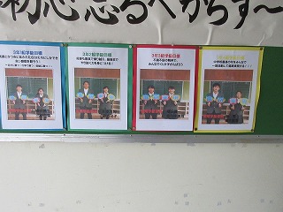 3年学年掲示板 後期学級委員の決意 家庭学習ノート 優秀作
