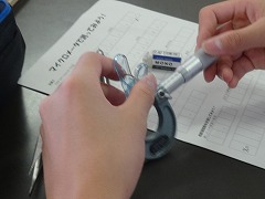 田辺高校 機械を使ってものの長さを正確に測ります。