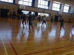 京都明徳高校 ヒップホップの基礎のステップを教えていただきました。始めは難しい動きに戸惑っていた生徒も、最後はビシッと決めて踊っていました。