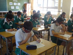 本日、5・6校時、3年生は進路学習に取り組みました。京都の公立高校から3校、私立高校から4校の、先生方や生徒の皆さんに来ていただき、1時間授業をしていただきました。生徒は、5校時・6校時と2つの講座を選択して受講しました。とても楽しく、本格的な内容で、高校での学習に興味や夢を抱いたようです。今日の学習も含め、自分の納得のいく進路選択をしてほしいと思います。
