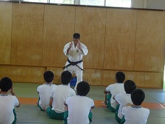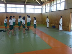 京都廣学館高校 少林寺拳法の基礎、特に護身の技を、元気で楽しい見本を見せていただきながら、実際にトライしました。身体や関節構造の不思議に、改めて気づきました。