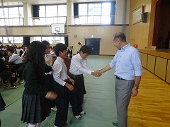 集中して話を聞きました。 楽しい話も満載 休み時間に原先生に握手を求める生徒多数