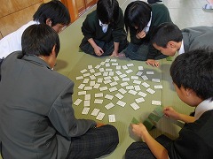 2年生の修学旅行中、1年生もしっかり留守を守り、勉強と部活をがんばりました。その間を利用して学年で、2日にカルタ大会、5日に学年体育(ドッジボール)を行いました。私は修学旅行について行ってたので、みることはかないませんでしたが、楽しく盛り上がったそうです。学級や学年のまとまりを作る上で、このような楽しい取組もいいですね。