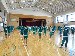 学年体育 準備運動、念入りに ドッジボール