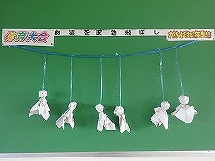 1年掲示板、テルテル坊主が・・・ 放課後前日準備