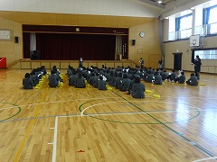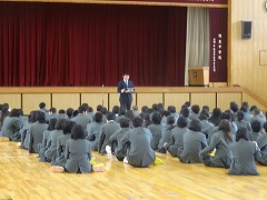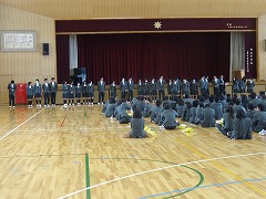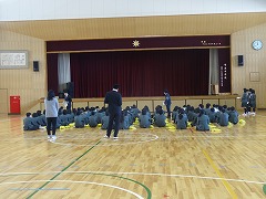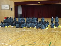 1・2年生がそれぞれ体育館で、本年度最後の学年集会を開きました。