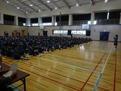 今日、6校時、体育館で生徒会本部役員選挙の立会演説会がありました。今回は、すべて信任投票でした。各候補者と応援演説者の話をよく聞き、候補者の人柄、立候補の動機、当選した暁には、どのようなことをしたいのかなど、みんなが真剣に聞きました。開票の結果は明日わかります。いずれにしても生徒会役員になった人は、みんなの見本になる行動と、みんなのために頑張ることが必要になります。また、選んだ人も選びっぱなしではなく、しっかりと協力して、ともにいい学校を作っていくことが大切です。