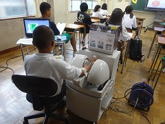 本日から3日間、放課後に、同志社大学超音波エレクトロニクス研究会とのコラボで、骨密度測定に取り組んでいます。希望者のみですが、骨密度について少しお話を聞いた後、アンケートに答え、骨密度を順番に測定しました。