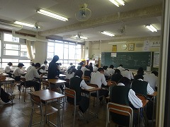 今日は、3年生は、1校時から5校時まで校内実力テストを受けました。文化発表会も終わり、大きな行事はほぼ終了しました。いよいよ一人一人の進路希望に向けて実力を発揮する時です。頑張れ3年生!