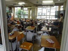 本日5校時後、防災訓練を行いました。天気予報、空模様とも、今にも雨が降りそうで、直前までグランドに避難するか、体育館避難か判断が難しい状態でした。