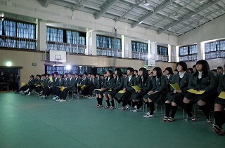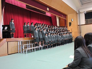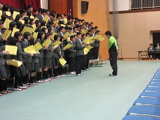 1年生の発表は、1年生らしいほほえましい、元気な内容でした。2年生の発表は、呼びかけでは、特に部活でお世話になった先輩への思いのこもった内容でした。歌も力強く、3年生から培良のバトンを引き継ぐという決意がよく伝わってきました。