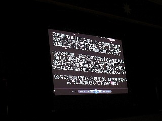 スライドは合計900枚の写真を駆使して、1年生からの思い出を丁寧に描いていて、皆で懐かしい思いに浸りました。