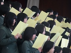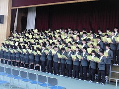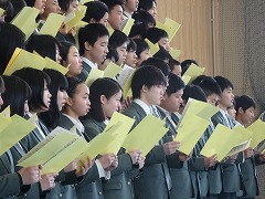 最後の3年生のメッセージと歌は圧巻でした。一人一人、3年間成長してきた自信と、隣で歌っている仲間への信頼があふれた発表でした。また、ここまで成長するにあたって、お世話になった保護者の皆様や先生、友人への感謝にあふれたものでした。後輩へも感謝の気持ちと、次は任せたぞという力強い思いの入ったメッセージでした。